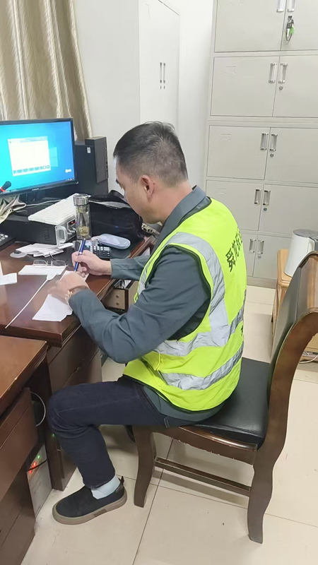 圖為:郭慶賀在鵬源碼頭核對車輛鉛封,嚴把煤炭數(shù)質(zhì)量關(guān)。