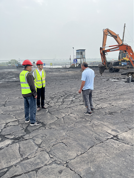 圖為:淮河物流事業(yè)部總經(jīng)理徐新懷在舜龍碼頭檢查工作,對節(jié)日期間堅守崗位的業(yè)務(wù)員周忠平表示慰問,并提出工作要求。